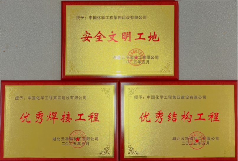 近日,由中南公司承建的湖北云凈磷化工有限公司40萬噸/年濕法凈化磷酸項目一期工程收到業(yè)主頒發(fā)的“安全文明工地”“優(yōu)秀焊接工程”“優(yōu)秀結(jié)構(gòu)工程”三塊獎牌及感謝信,業(yè)主高度贊揚項目團隊展現(xiàn)出的卓越專業(yè)素養(yǎng)、頑強攻堅精神與強烈責任擔當。