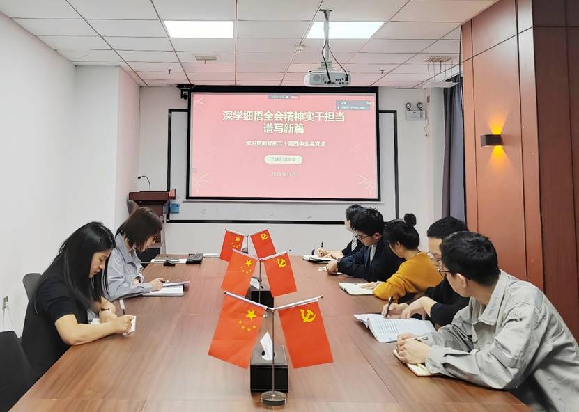 近日,中化勞務黨支部于洞庭湖博物館舉行了黨的二十屆四中全會精神學習宣講會。會上,黨支部負責人緊扣黨的二十屆四中全會召開所具有的重大歷史意義、“十五五”時期發展目標任務等核心內容進行了全面解讀,著重闡釋了全會提出的“加快高水平科技自立自強,引領發展新質生產力”等關鍵部署,并緊密結合區域發展實際情況,詳細講解了如何將全會精神與生態保護、綠色轉型等工作進行深度融合,助力參會人員深刻領悟中國式現代化的本質要求,為公司踐行綠色發展理念、推進高質量發展注入了磅礴精神動力。