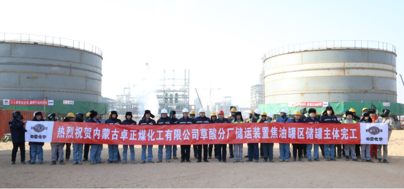 西部公司內(nèi)蒙古卓正煤化工項目焦油罐區(qū)主體結(jié)構(gòu)完工
